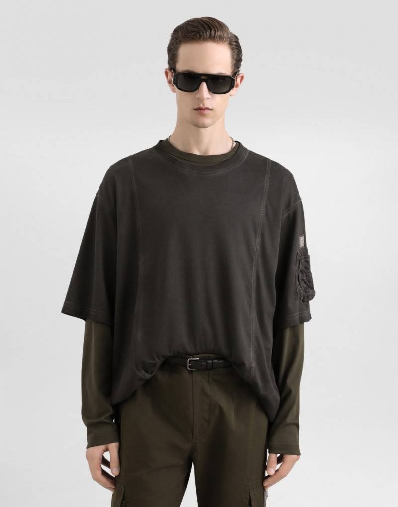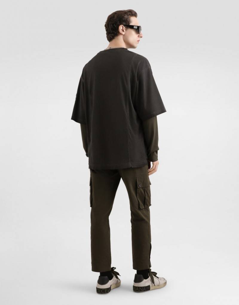 D&G系列中的棉质T恤👕,为追求休闲与精致兼具的都市男士提供了理想选择。这款T恤👕选用黑色调呈现,宽松版型弱化身材束缚感,适配多种身形与『穿搭』场景,短袖设计贴合春夏季节的穿着需求,清爽舒适。左袖拉链口袋的独特细节,打破了传统T恤👕的单调感,在保留休闲属性的同时增添设计巧思,让日常『穿搭』更具辨识度。杜嘉班纳将简约质感与细节巧思融入这款棉质T恤👕,使其成为现代都市造型中的实用单品,可单独穿着展现随性气质,也可作为内搭搭配外套🧥,轻松适配日常出行、休闲社交等多种场景,彰显DG对男士日常『穿搭』需求的深刻理解。
