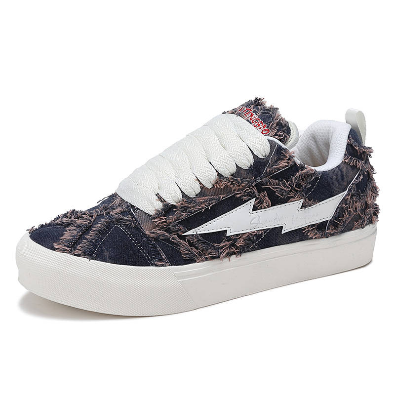 品牌故事:为 Z 世代打造潮流普惠闪电风暴 shandian × Fengbao 的品牌故事充满了对街头文化的热爱与对年轻群体需求的深刻洞察。品牌创始人是资深街头文化爱好者,深耕潮流鞋类行业十余年,发现年轻群体对个性鞋履需求强烈,但市场上要么是高价潮牌让人望而却步,要么是平价鞋款缺乏设计感。2018 年,品牌正式创立,旨在为 Z 世代打造 “有颜值、好穿、不贵” 的『街头潮流』鞋履。其标志性的 “闪电” LOGO 既象征 Z 世代的活力与突破精神,也代表鞋履 “轻便、灵动” 的产品特质。