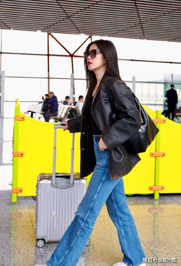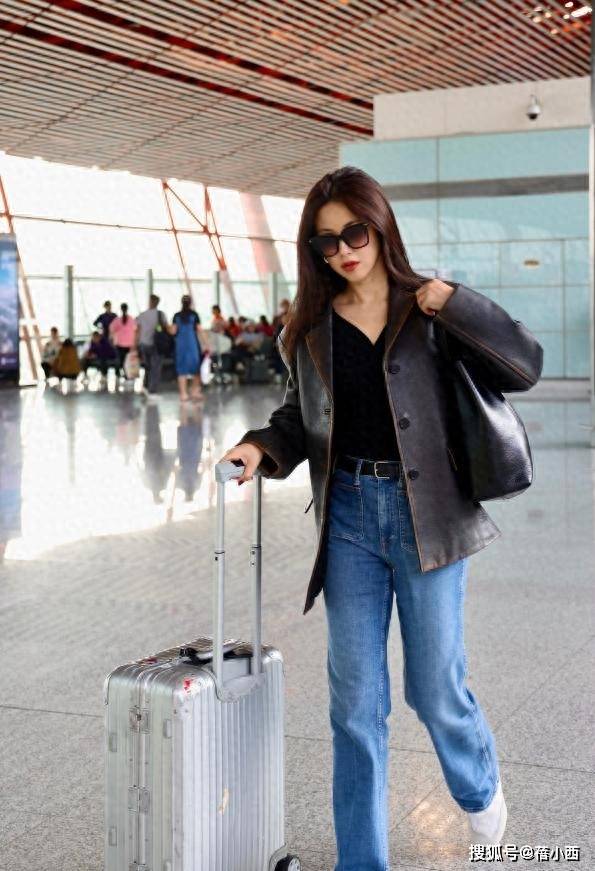 皮衣很适合在春季穿,因为其具有一点厚度,防风效果好。至于如何搭配,我们可以向女神『朱珠』学习。