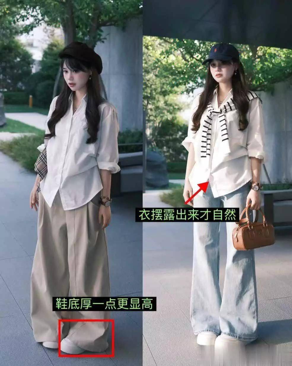 指南2.阔腿裤要配厚底鞋,露出衣摆穿更自然