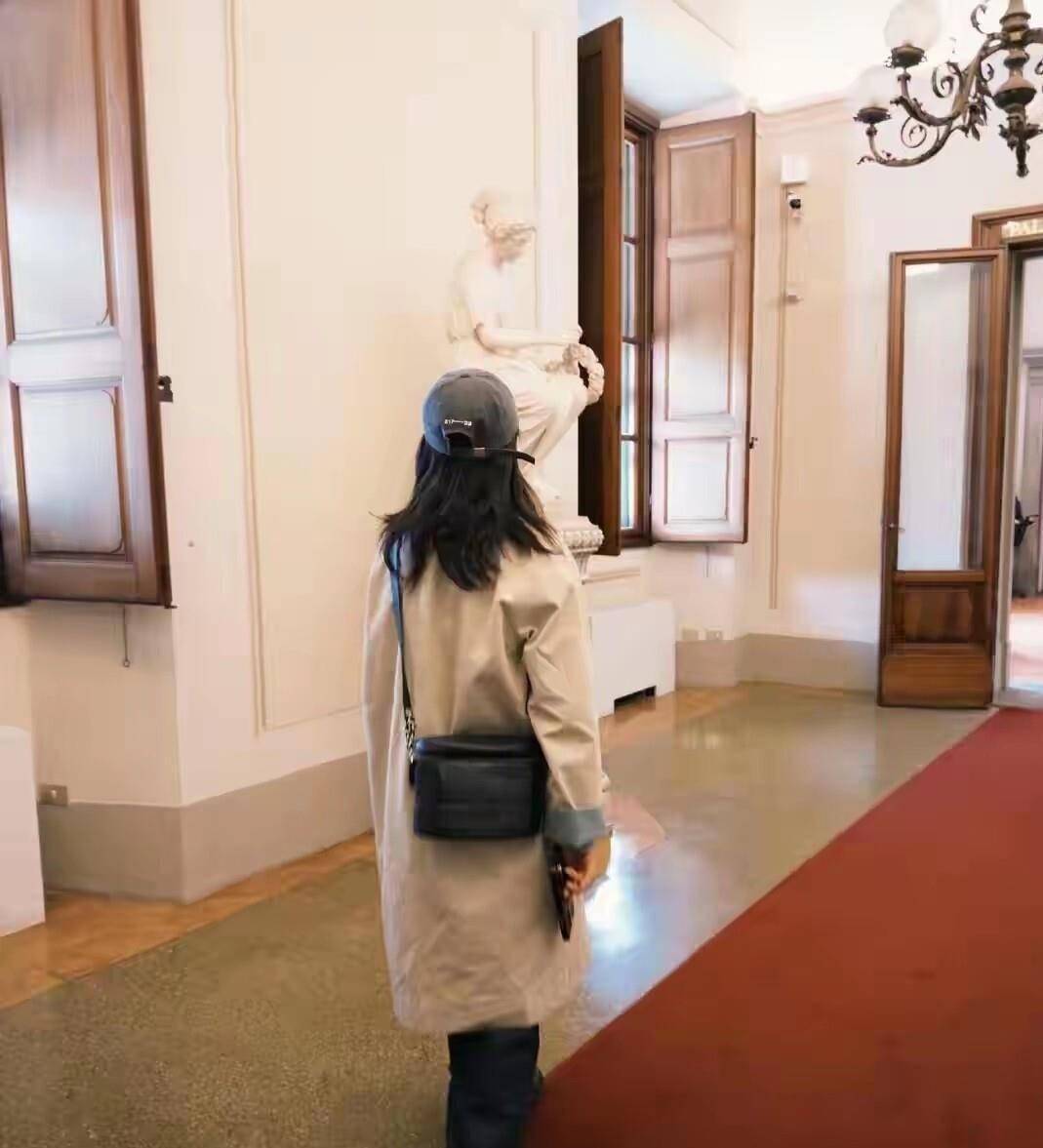 在佛罗伦萨的照片中,蒋勤勤选择了一件剪裁利落的米色长『风衣』。 这个颜色选得很妙,不像黑色那么严肃,又比鲜艳色系更显高级。佛罗伦萨是文艺复兴的发源地,满街都是暖黄色的老建筑、深绿色的百叶窗。 她这件米色『风衣』往那儿一站,就跟背景融到一块儿去了,不抢戏,但你就是挪不开眼。