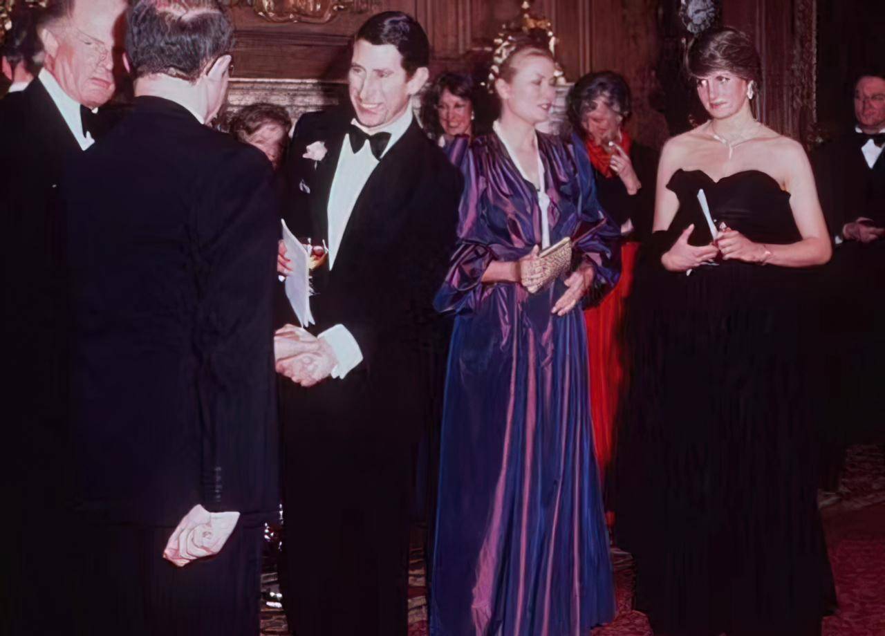 然而宴会当晚,戴安娜依然难掩局促。与一众衣着精致、雍容华贵的宾客相比,她的礼服显得过于素淡,格格不入。个别女宾甚至忍不住发出轻蔑的笑声。查尔斯王子到场后忙于与其他宾客叙旧,戴安娜只得孤身站在大厅里,显得更加拘谨和孤单。