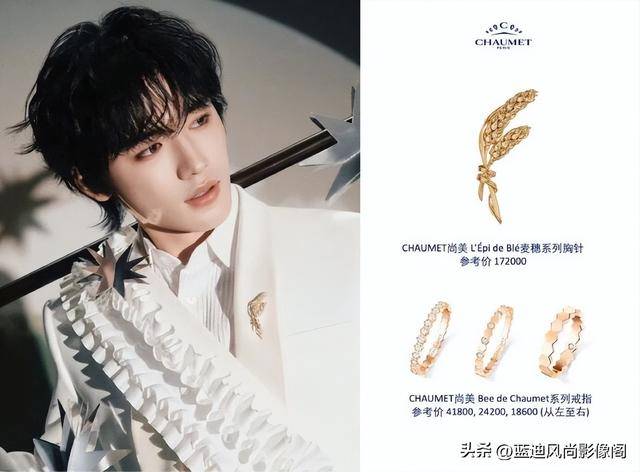 这套造型的巧思,藏在 “以简衬奢” 的分寸感里。干净利落的白色造型,褪去了多余的装饰,既衬得少年身姿清俊挺拔,也让 CHAUMET 的珠宝成为了画面的点睛之笔。