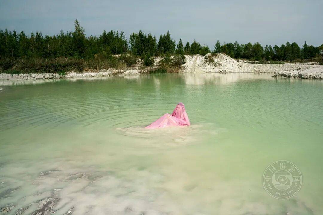 我将自我肖像置于照片中震撼人心的视觉意象之中,以此激发人们对资源开采行为影响范围的思考。这些产业产生的高浓度矿物质与酸性堆积,造就了超凡脱俗的视觉形态与色彩。《洛姆马尔代夫的奥达丽斯克》摄于捷克涅波米什莱附近的一处旧高岭土矿场,因酷似热带岛屿被当地人称为“捷克马尔代夫”。高岭土作为『化妆品』原料对皮肤无害,夏季这里已成为非正式的休闲湖泊。