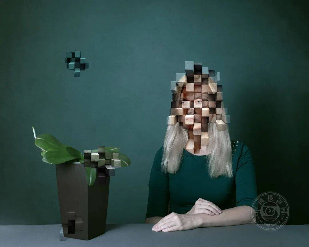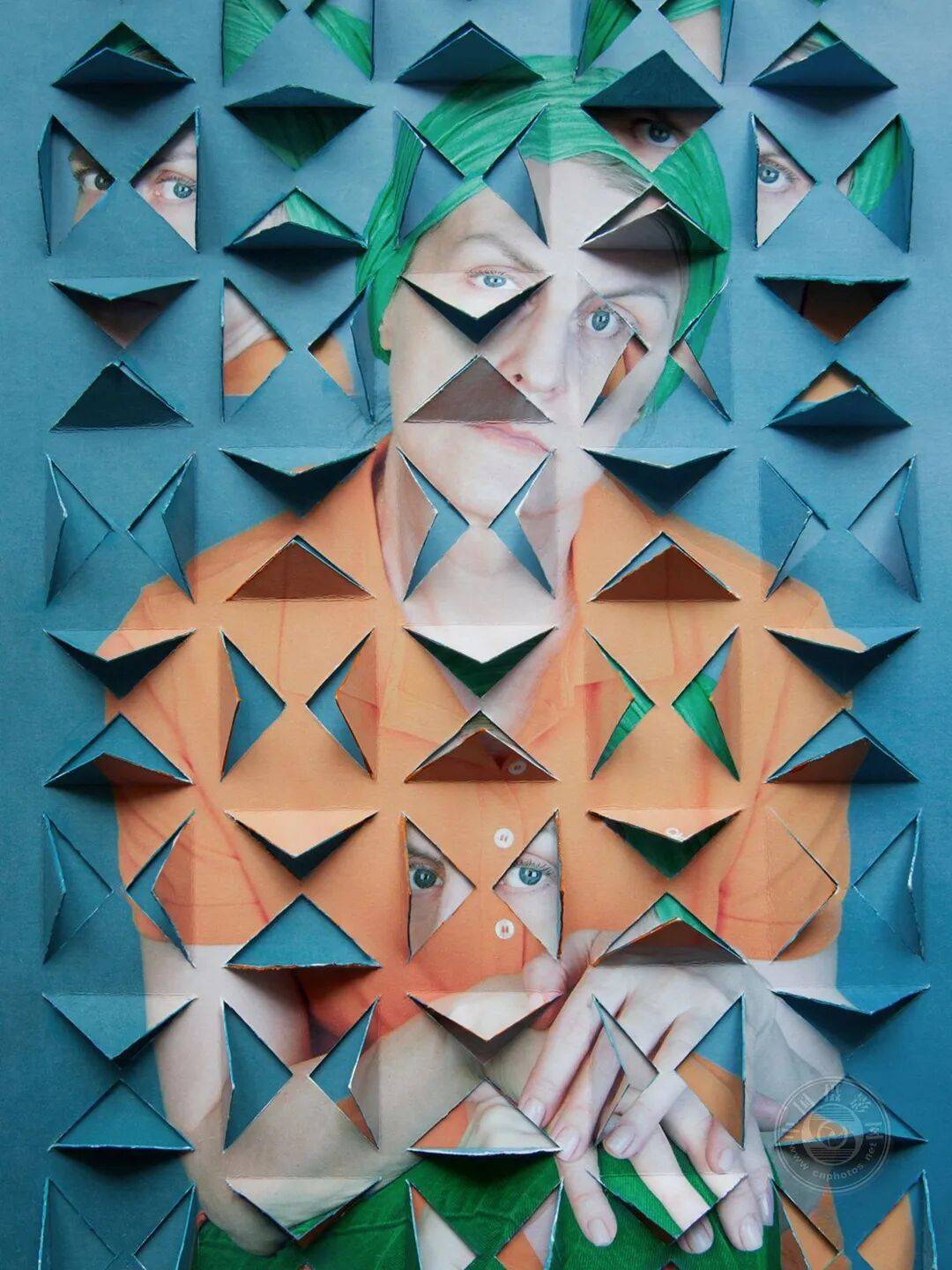 照片中的自画像宛如几何套娃谜题。面孔仿佛卡在三角迷宫里迷失了方向。在那些令人眼花缭乱的细节中,你必须像解谜题般寻找那些面孔。
