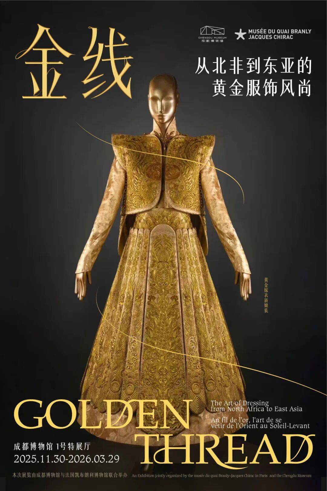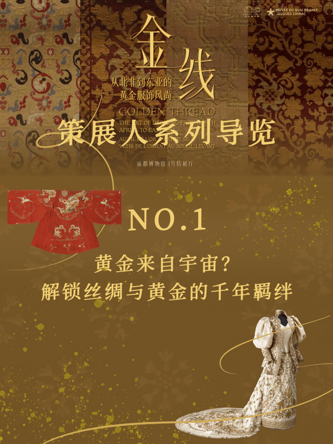 如果要用一种材质串联起整个人类文明史,黄金,一定是最耀眼的那条线。成都博物馆的“金线——从北非到东亚的黄金服饰风尚”特展刷屏了不少人的朋友圈。这一场由成博与法国凯布朗利博物馆联合呈现的大展,不仅是全球巡展的中国唯一一站,更汇集了来自亚非欧的200余件/套织金珍品。