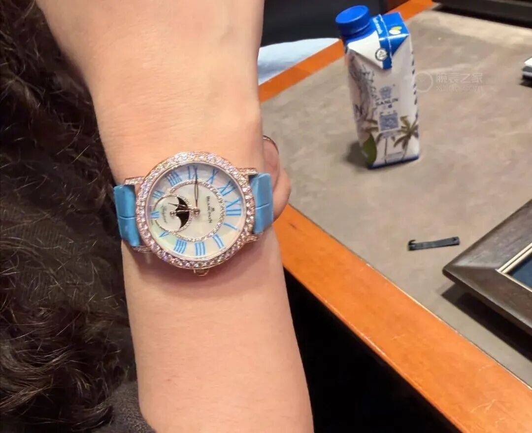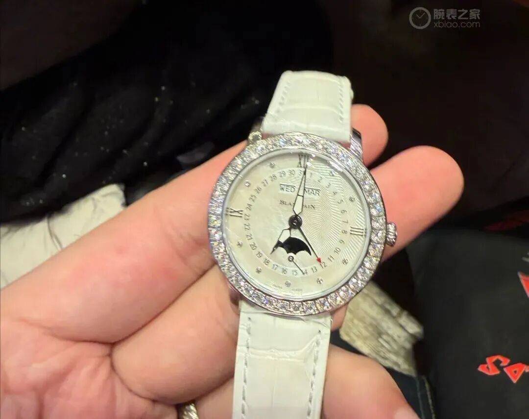 ▲太太试戴了下女款表,宝珀的贝母盘做的非常精致