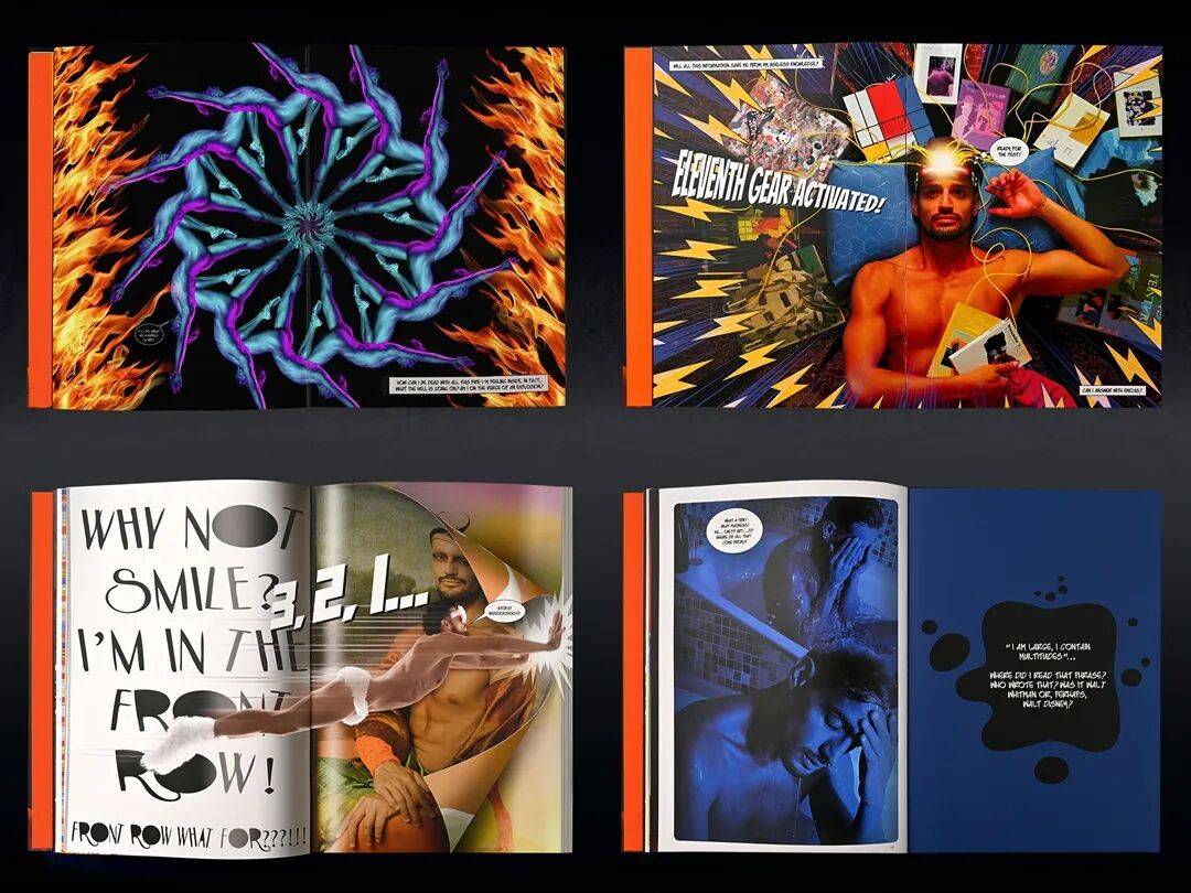 这是一部以漫画美学为灵感的新摄影艺术书,采用图画小说形式呈现。这部由他亲自撰文并掌镜的作品,带领读者跟随主角🎭️踏上一段超现实的颠覆之旅,现实在此扭曲变形,物理定律亦被打破。旅途中,他邂逅诸多神秘角色——这些向扬·凡·艾克、达芬奇到村上隆、让·保罗·古德等视觉艺术家致敬的形象贯穿全书,并穿插奥斯卡·王尔德、尼采、大卫·林奇、约翰·沃特斯、梅·韦斯特、詹妮弗·桑德斯等文化偶像的经典语录(及改编语录)。