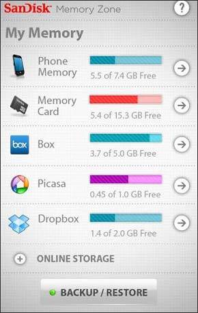 SanDisk Memory Zone与上面提到的有点不同。它可以整理您的 Android 内容,同时释放 Android 手机上的存储空间。您可以在 Android 内部存储、SD 卡、多个云存储帐户和 SanDisk 双驱动器之间移动文件。
