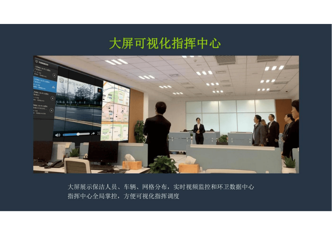 智慧环卫体系具备两大突出特色:大屏可视化指挥中心与环卫工人人文关怀机制。指挥中心通过大屏幕实时展示保洁人员、车辆作业状态及网格分布情况,结合视频监控与环卫『数据中心』,实现全局化、可视化的指挥调度。另一方面,系统通过智能手表等终端设备,为环卫工人提供健康监测、SOS🆘紧急求助、天气提醒等服务,并配套每年一定额度的救护车费用报销,体现出对劳动者安全与健康的高度重视。