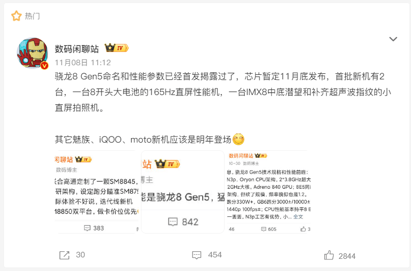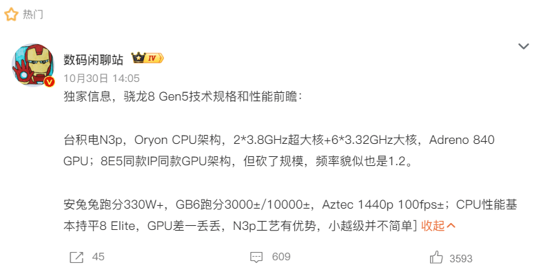 最近数码圈被『骁龙』 8 Gen5 的爆料刷屏了,多方消息确认这颗『芯片』暂定 11 月底正式发布。和往年不同,这代『芯片』的定位格外有意思 —— 不是单纯的迭代升级,而是用旗舰级架构做 “精准降配”,CPU 性能追平『骁龙』 8 至尊版,价格却瞄准 3000-4000 元中端市场。对预算有限又想要高性能的用户来说,这波操作确实让人期待,但背后的取舍也得慢慢聊透。