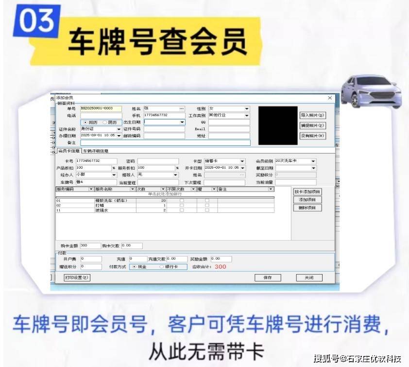 会员管理:可录入会员姓名、手机号、生日、车牌号等信息,设置不同会员等级与相应折扣。支持会员储值,提供多种储值方式及充值赠送活动。准确记录会员积分的获取、使用和余额,用于兑换商品、礼品或服务。还能详细记录会员车辆信息,如车牌号、品牌、里程数,车子的型号,车子的保养时间,维修时间,保养的什么内容等,设置保险提醒。