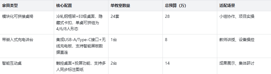 改造中:50万预算的“精准投放”方案针对痛点,学校摒弃“全面换新”思路,将50万预算聚焦模块化、智能化核心需求,8间教室的家具配置各有侧重但标准统一: