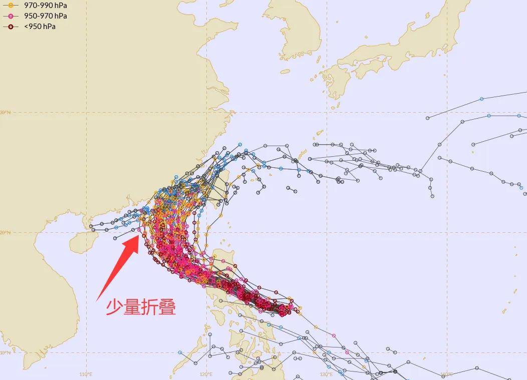当下给出的路径路线都是南海北上,然后有概率在我国台湾登陆一次,强度是在热带风暴级别,9级左右。