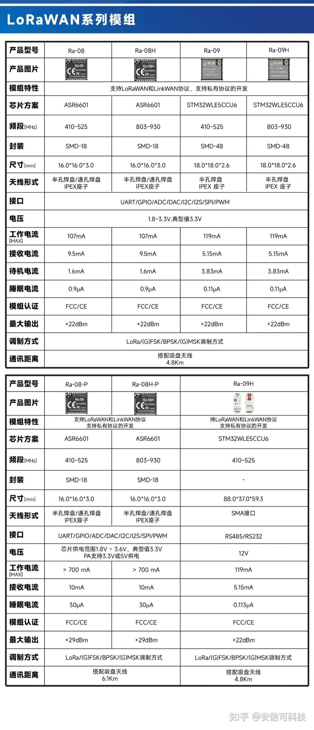 02、安信可 LoRa 模组产品系列LoRa(Long Range)是一种基于 CSS(Chirp Spread Spectrum)扩频调制 的低功耗远距离无线🛜通信技术,由 Semtech 公司提出。