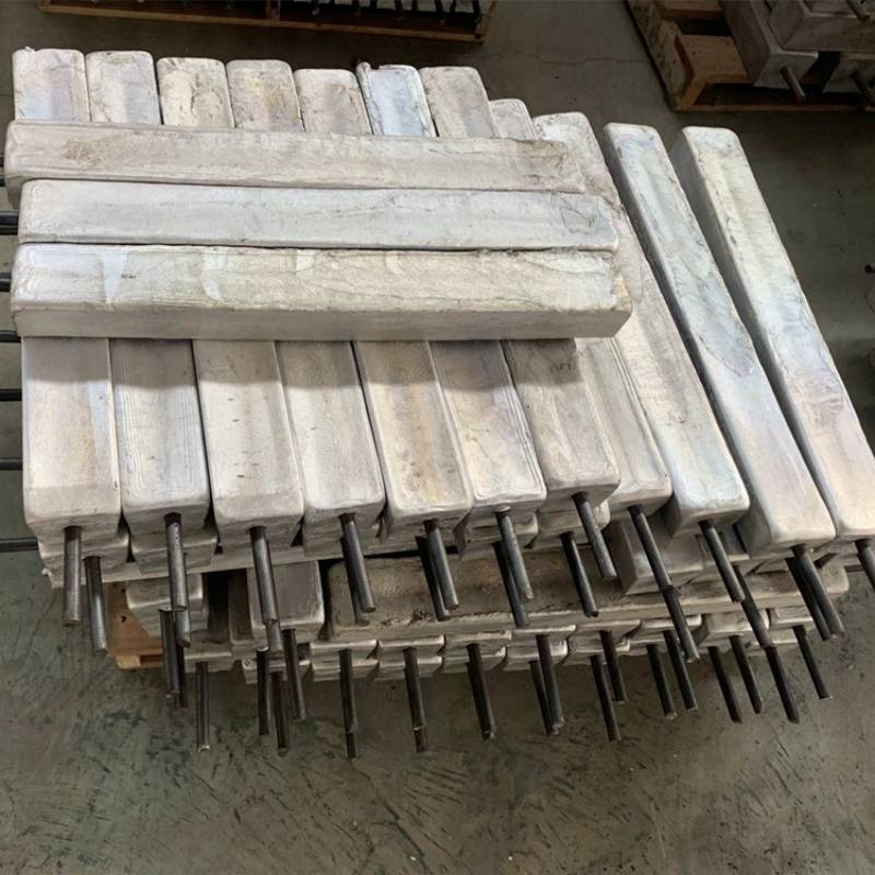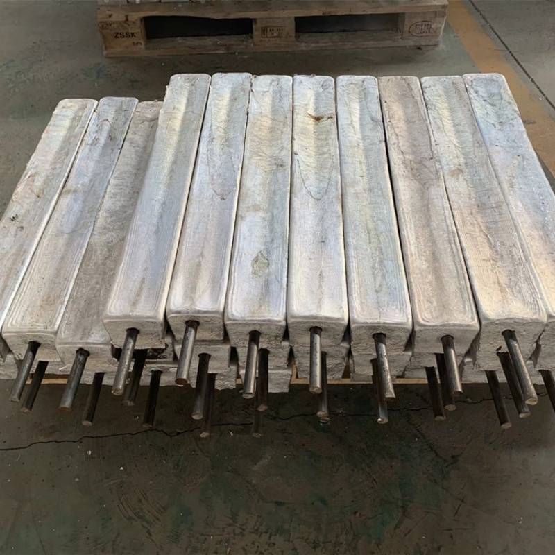 - 合金类型:常用 AZ63B(标准电位) 或 MGMIC(高电位);开路电位分别约 -1.57 ~ -1.67 V vs. CSE 和 -1.77 ~ -1.82 V vs. CSE,驱动电位更大,适合中高电阻率土壤(10 ~ 1000 Ω・m)。