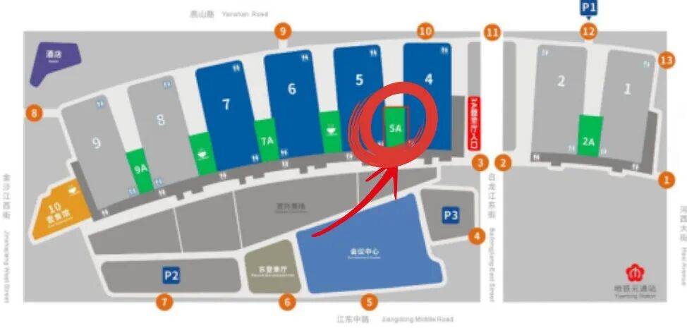 导航至南京国际博览中心12门或7号门,进入地下P1或P2停车场;