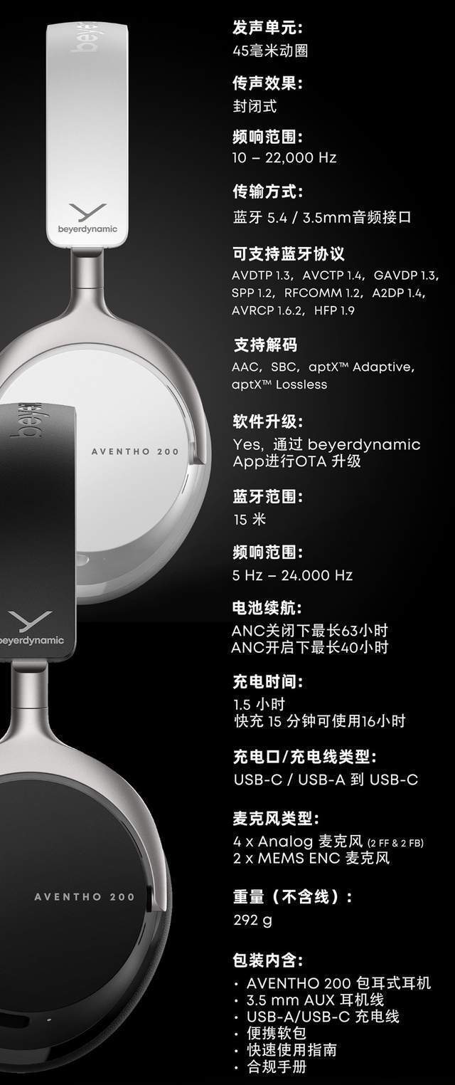 AVENTHO 200可在beyerdynamic授权线上店铺和线下零售店购买,建议零售价为人民币2,499元,黑色与北欧灰色可供选择,更换零件和耳垫需单独订购。