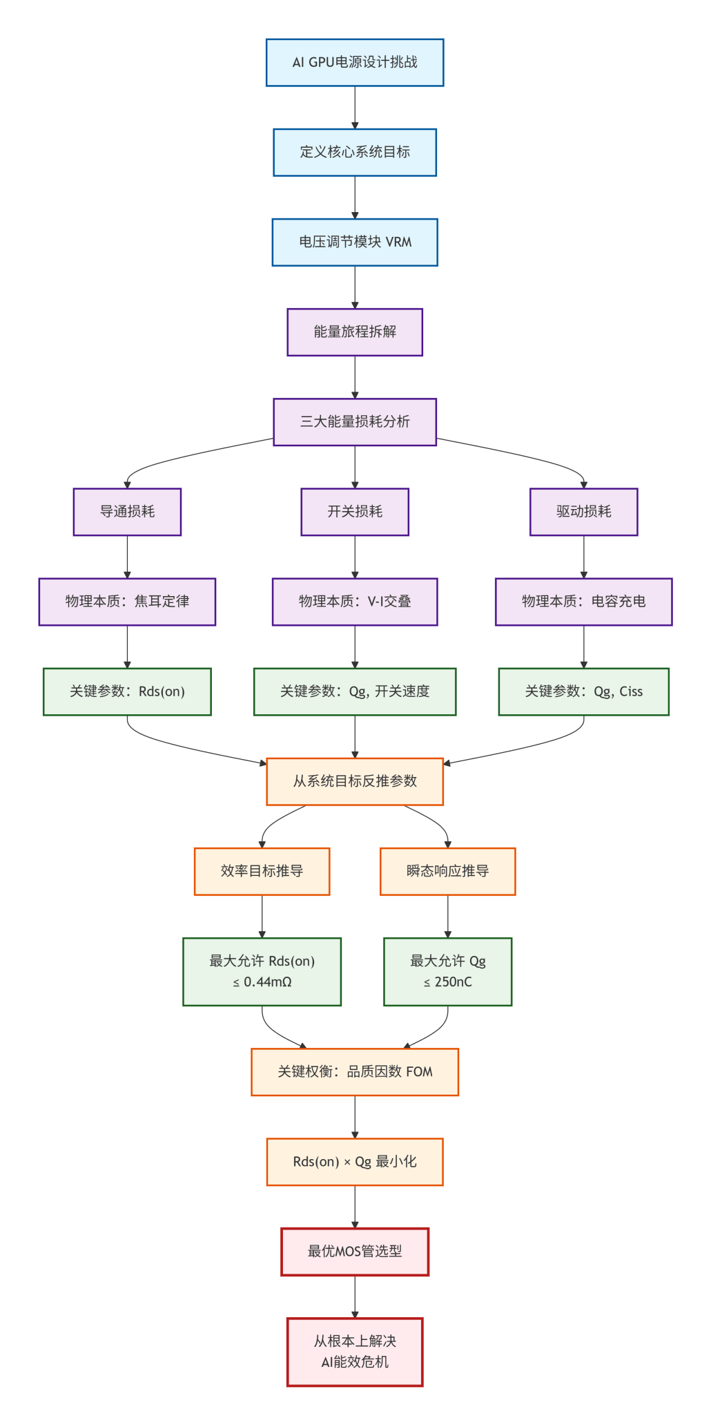通过这条清晰的主线——将AI电源宏大的系统级挑战(高功耗、快瞬态),归结到MOS管这个基本物理单元的工作本质上——我们完成了一次完整的原理推导。