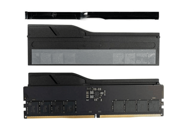 金士顿Fury Beast拆开马甲后,可见内存颗粒和PMIC位置各有一块导热垫