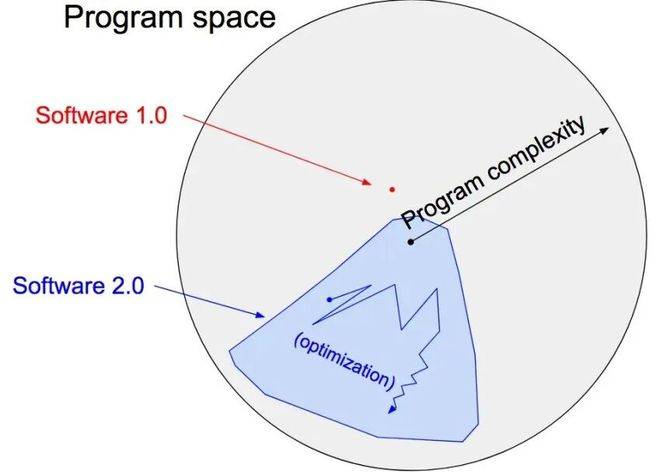 从软件1.0到软件2.0,人类不再负责穷举规则,而是只需给出一个清晰的目标,让神经网络在巨大的可能性空间中试错、迭代、收敛。