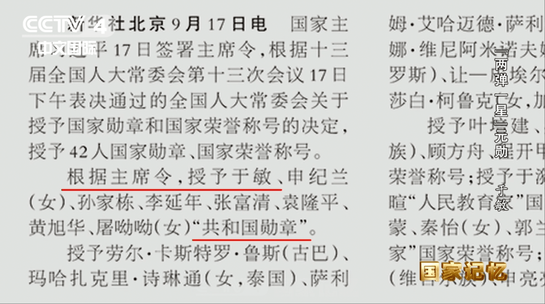 2019年1月16日,于敏因病医治无效,在北京逝世,享年93岁。同年9月,首批“共和国勋章”颁授,于敏也获此殊荣,这是国家对他的褒奖。