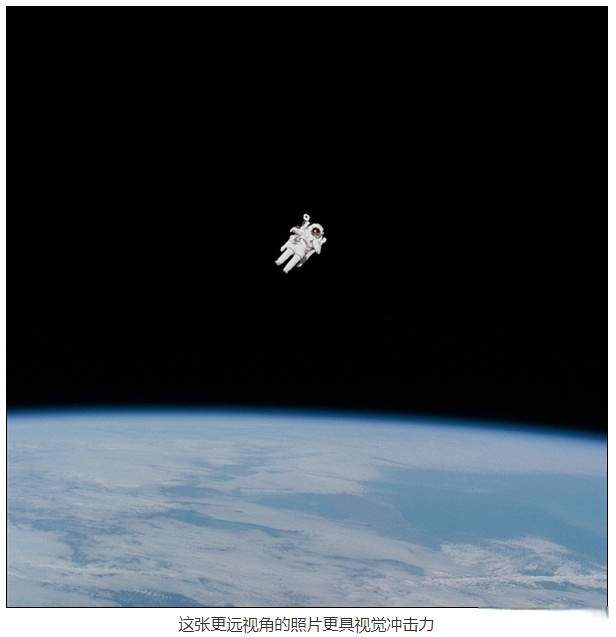 在这个距离上,挑战者号看起来就像是一个玩具模型,而布鲁斯周围是绝对的寂静和空旷,他在太空中悬浮了近6个小时,其中有30分钟是完全脱离飞船的自由飞行。