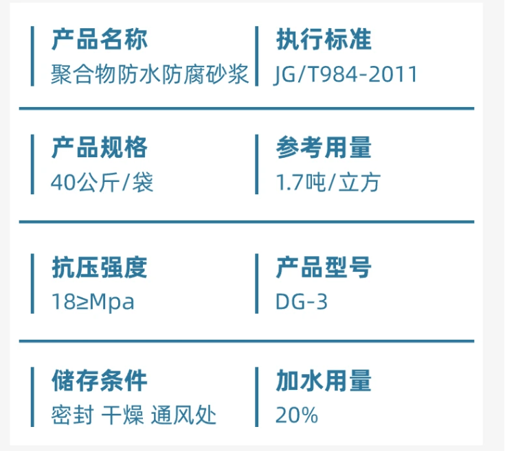 2、配比设计原则采用低水胶比(0.28-0.35)和最优聚合物掺量(水泥质量的15%-25%),平衡工作性、强度与防腐性能。