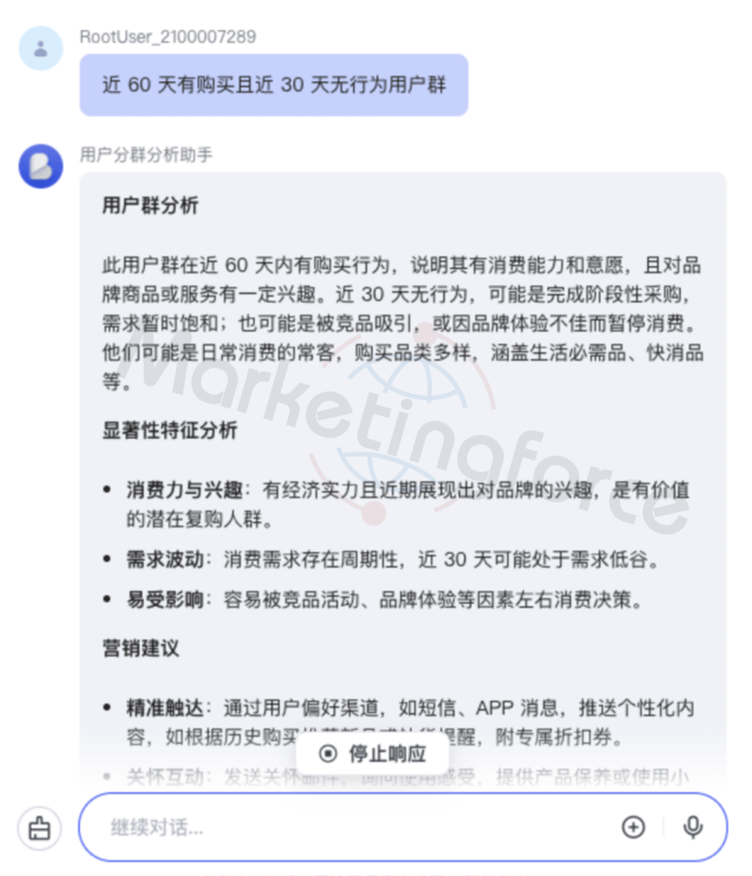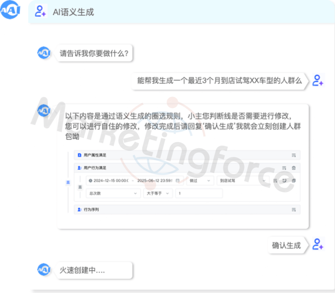 更值得一提的是,AI Agent智能体支持自然语言交互操作,运营人员无需专业算法知识,通过简单指令即可生成深度分析报表,将传统需要数天完成的人群分析周期缩短至分钟级,大幅提升了营销决策的敏捷性。