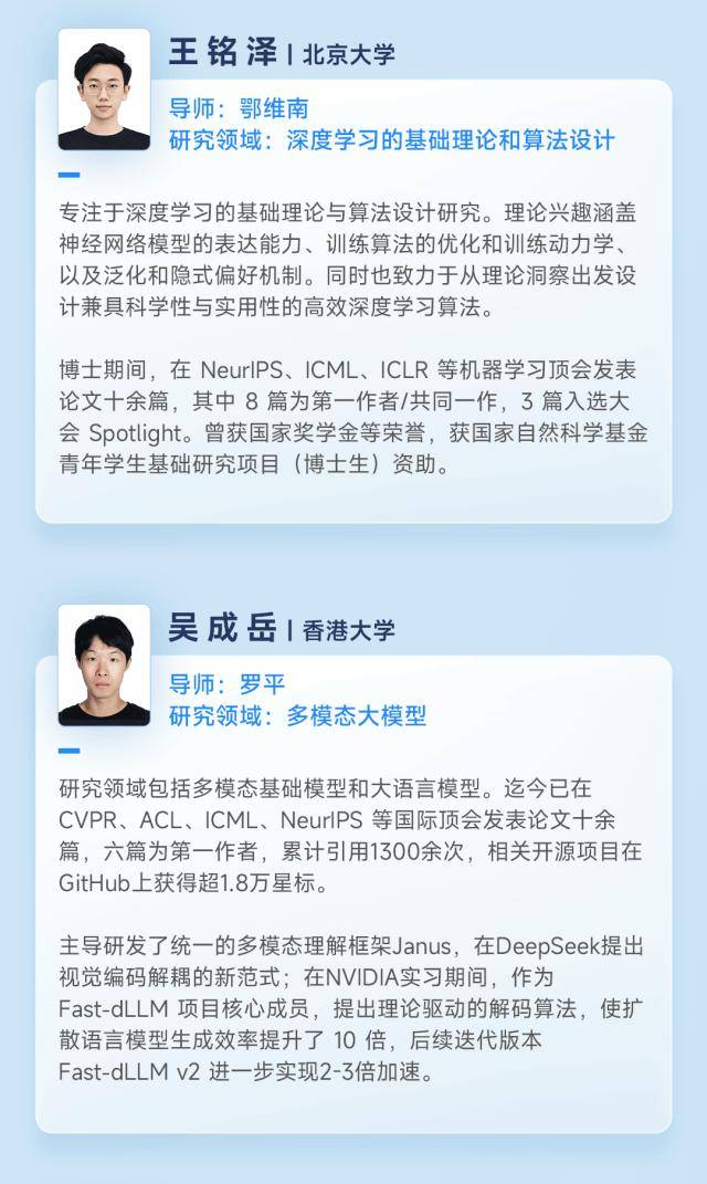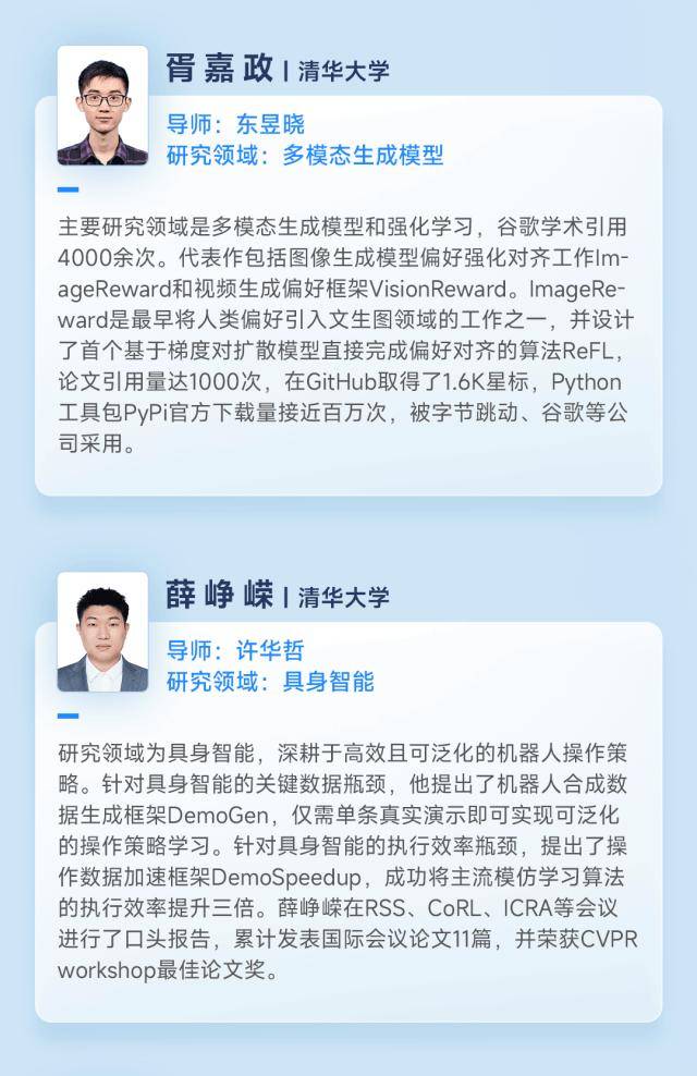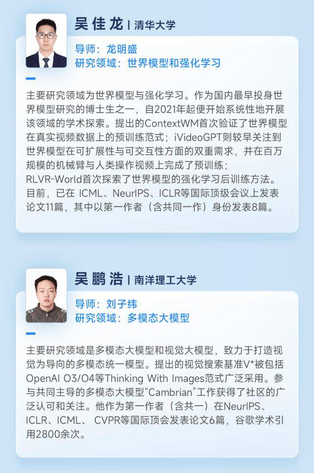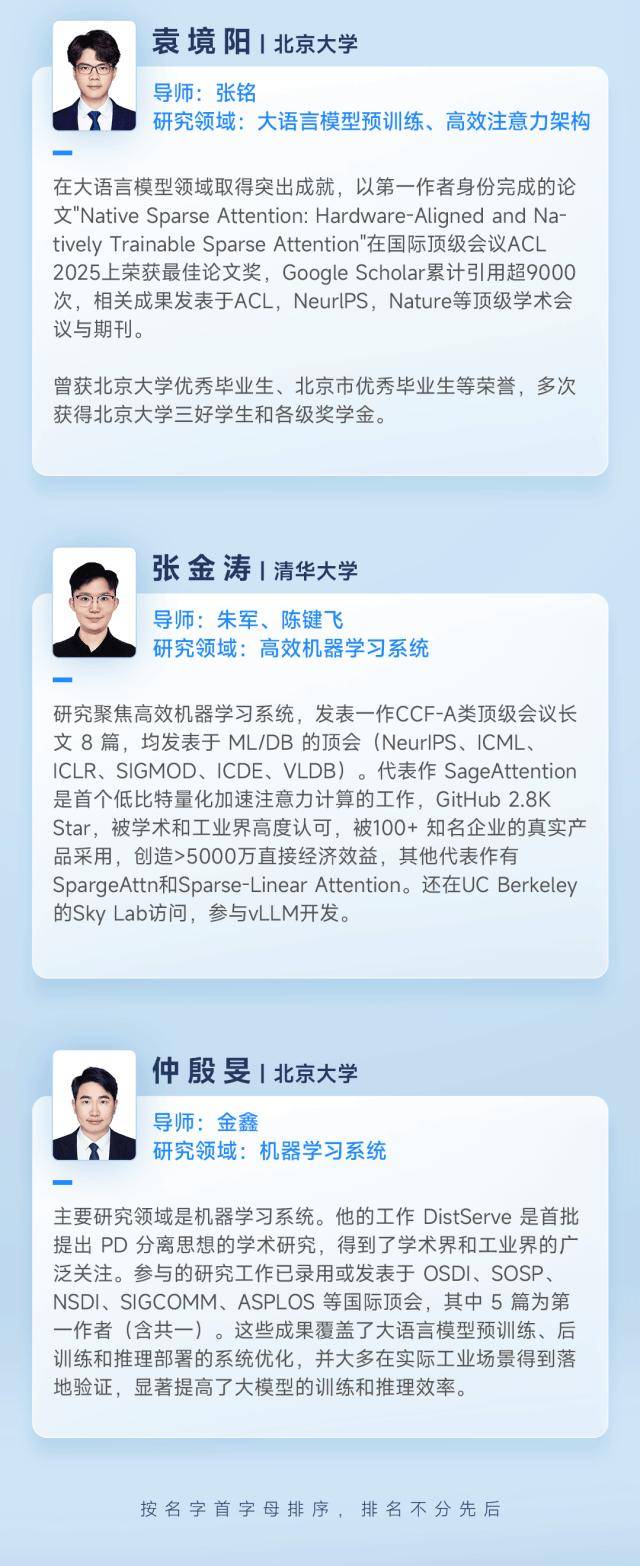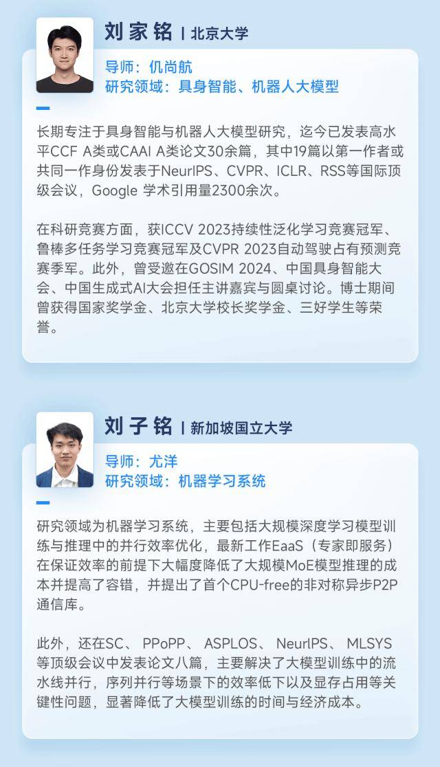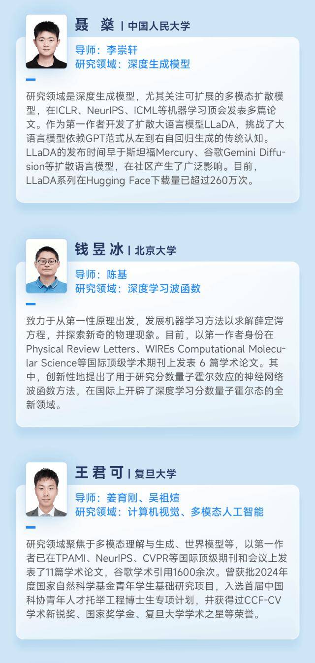 本次奖学金计划收到了来自中国、新加坡 66 所高校 500 余名同学的申请。最终,来自清华大学、北京大学、复旦大学、中国人民大学、华中科技大学、香港大学、新加坡国立大学、南洋理工大学的 20 位博士获奖,覆盖大模型、机器学习、多模态、AI Infra、『机器人』️、AI for Science、硬件等多个研究领域。