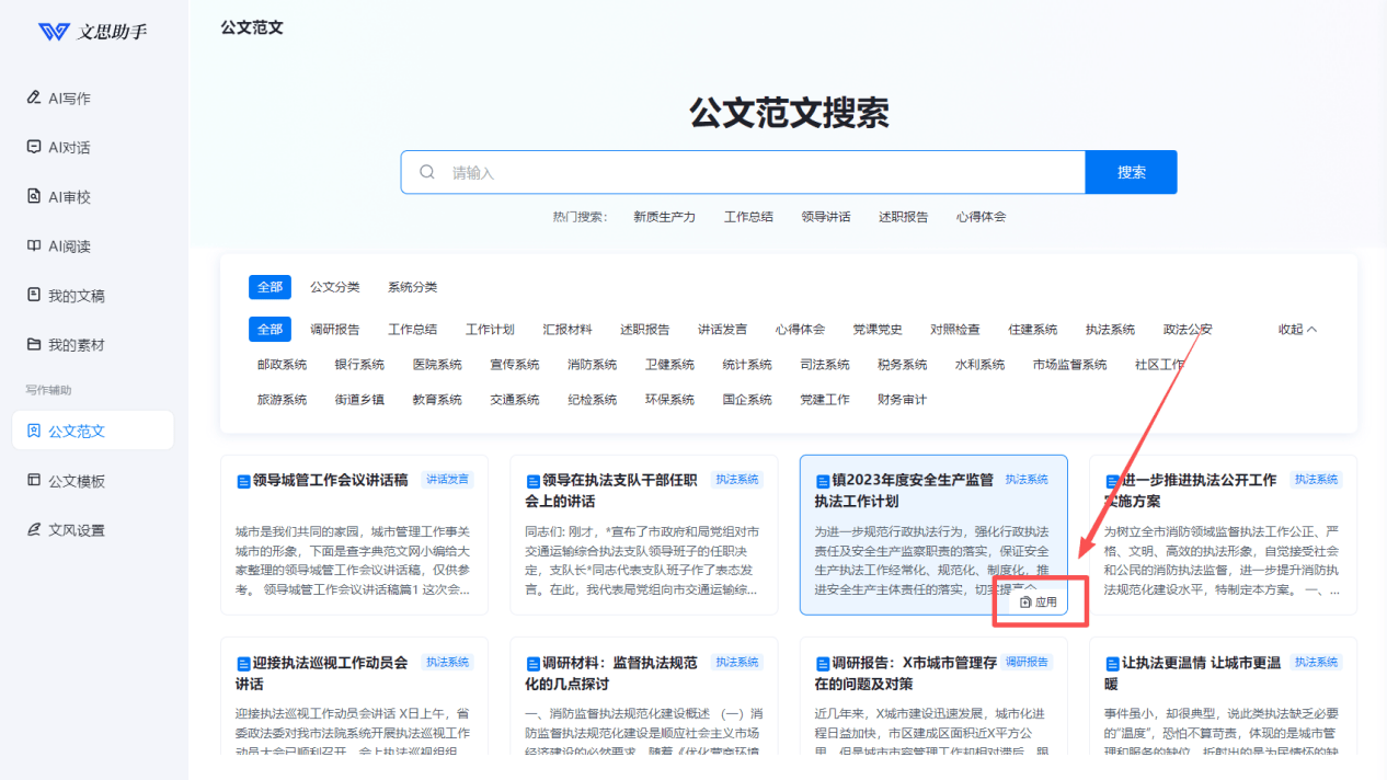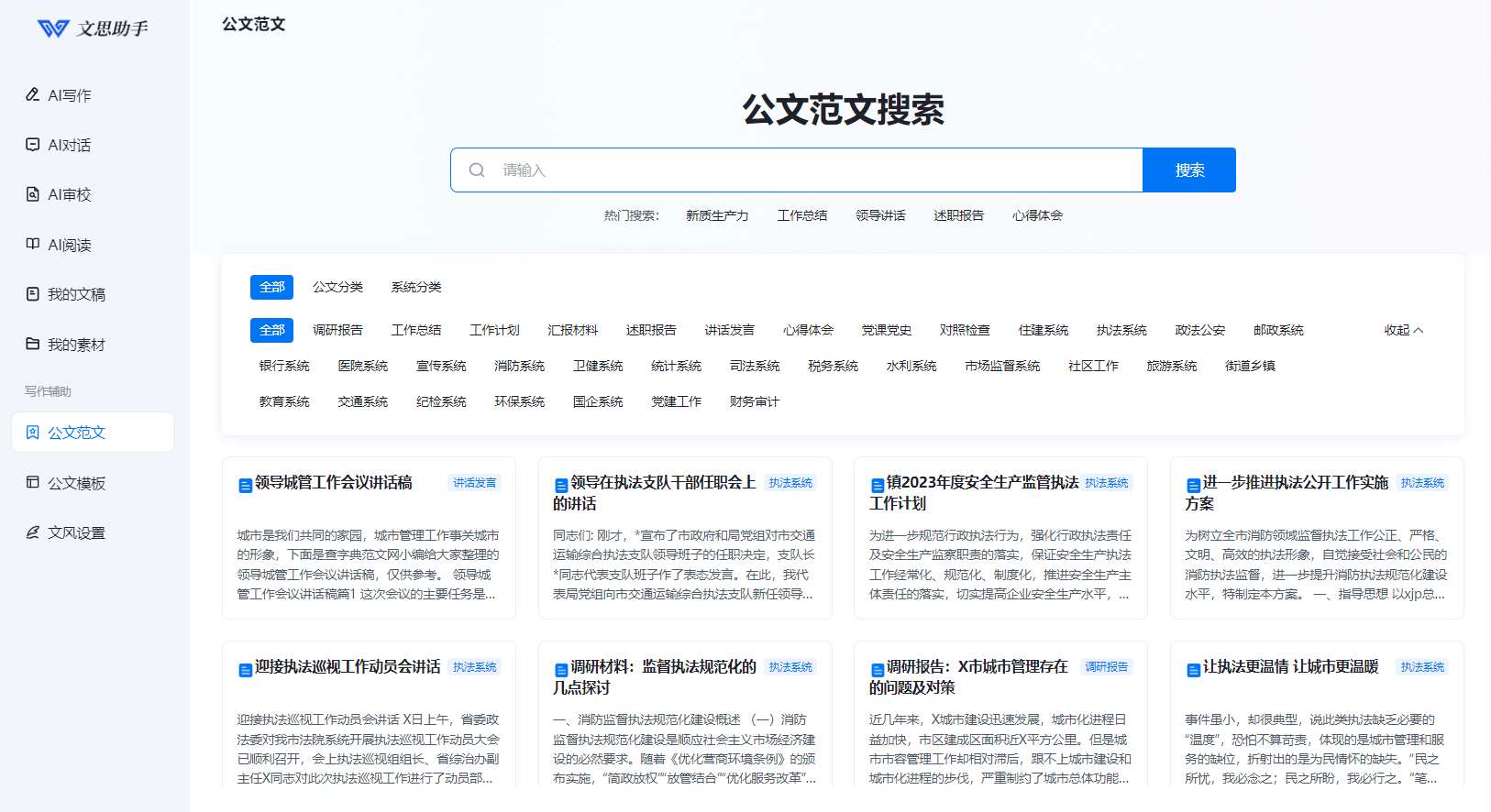 系统按照不同行业体系分类,如住建系统、执法系统等,针对不同系统的汇报重点、术语体系和表达风格,平台都为你量身定制。
