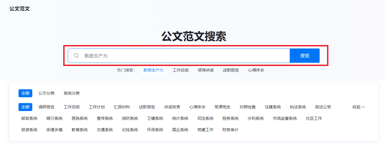 范文库支持直接输入关键词,系统自动联想相关范文内容,支持模糊匹配与语义理解。