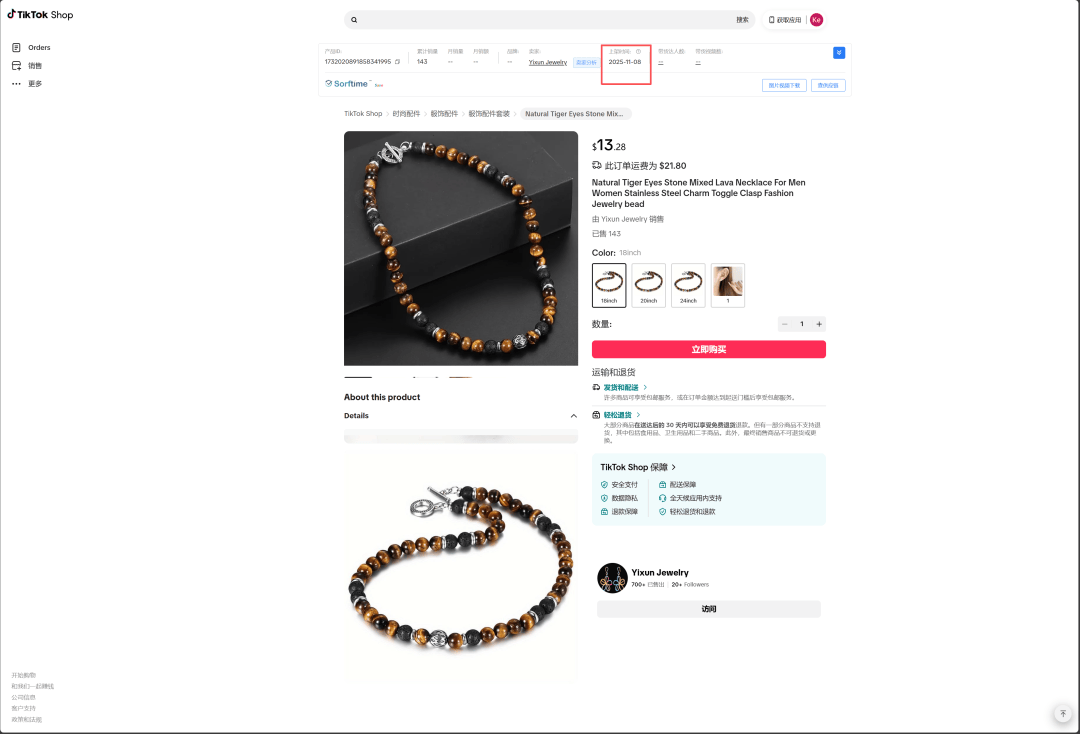 TikTok Shop 11月6日上架的热门商品,Sorftime TikTok 专业版 第2天成功抓取并分析。