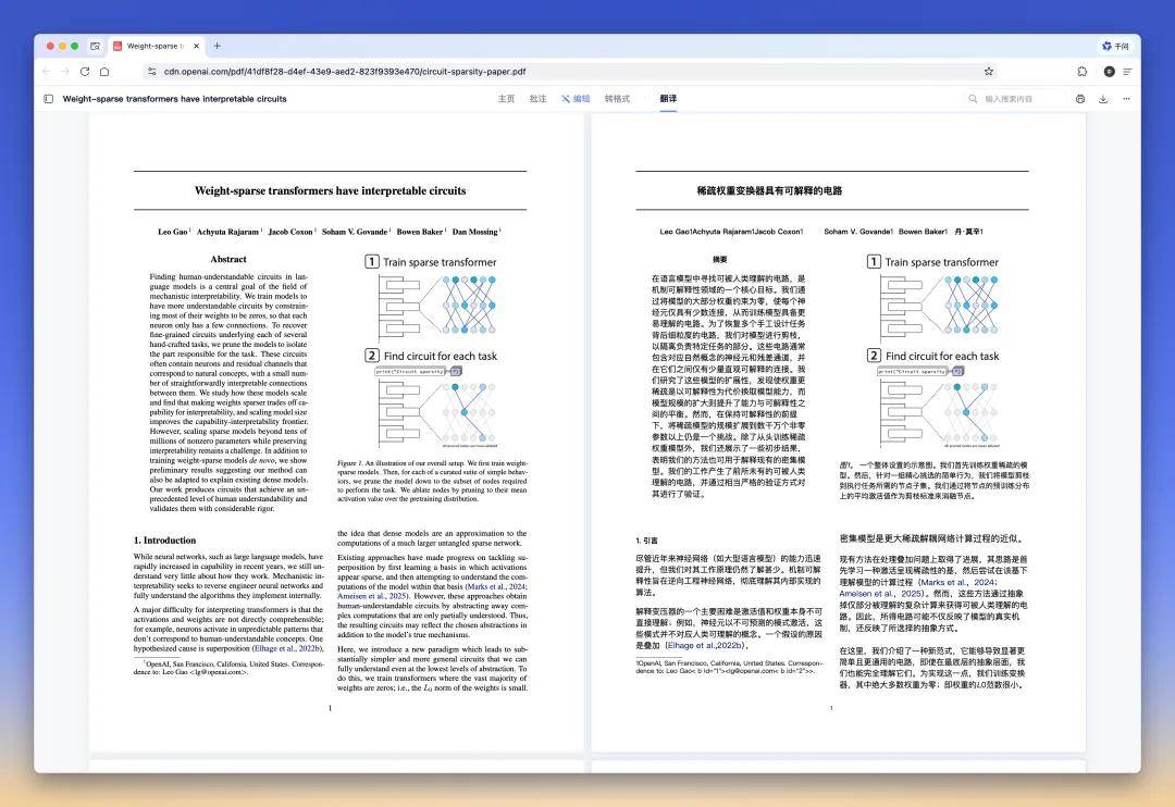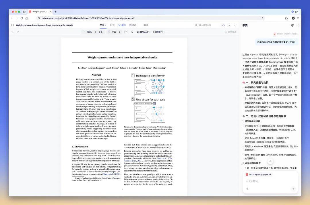 遇到论文研读这类真正的生产力场景,夸克的优势就更大了。大多数论文都是以 PDF 形式发布,但多数 AI 浏览器都只是简单套用了 Chromium 内核,没有对 PDF 阅读进行专门优化,阅读体验十分粗糙。夸克则借助此前积累的文档处理经验,加入批注、对照翻译、格式转换乃至跨端传输等一系列实用功能。两相比较,完全是精装修和毛坯房的差别。