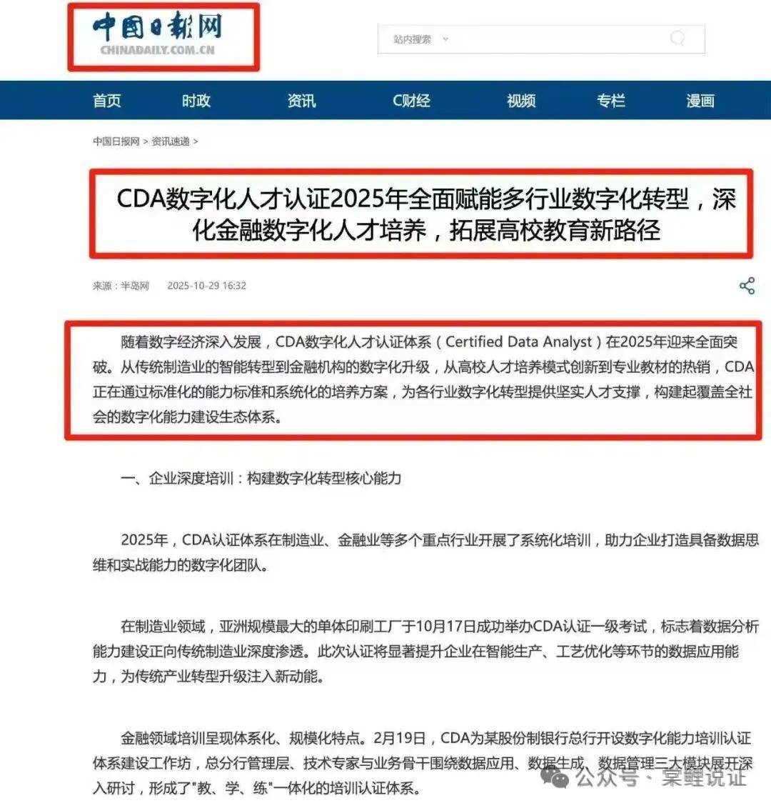 CDA『数据分析师』是数据领域认可度最高的证书,与CPA注会、CFA特许金融师齐名。受到了、经济日报等权威媒体推荐。