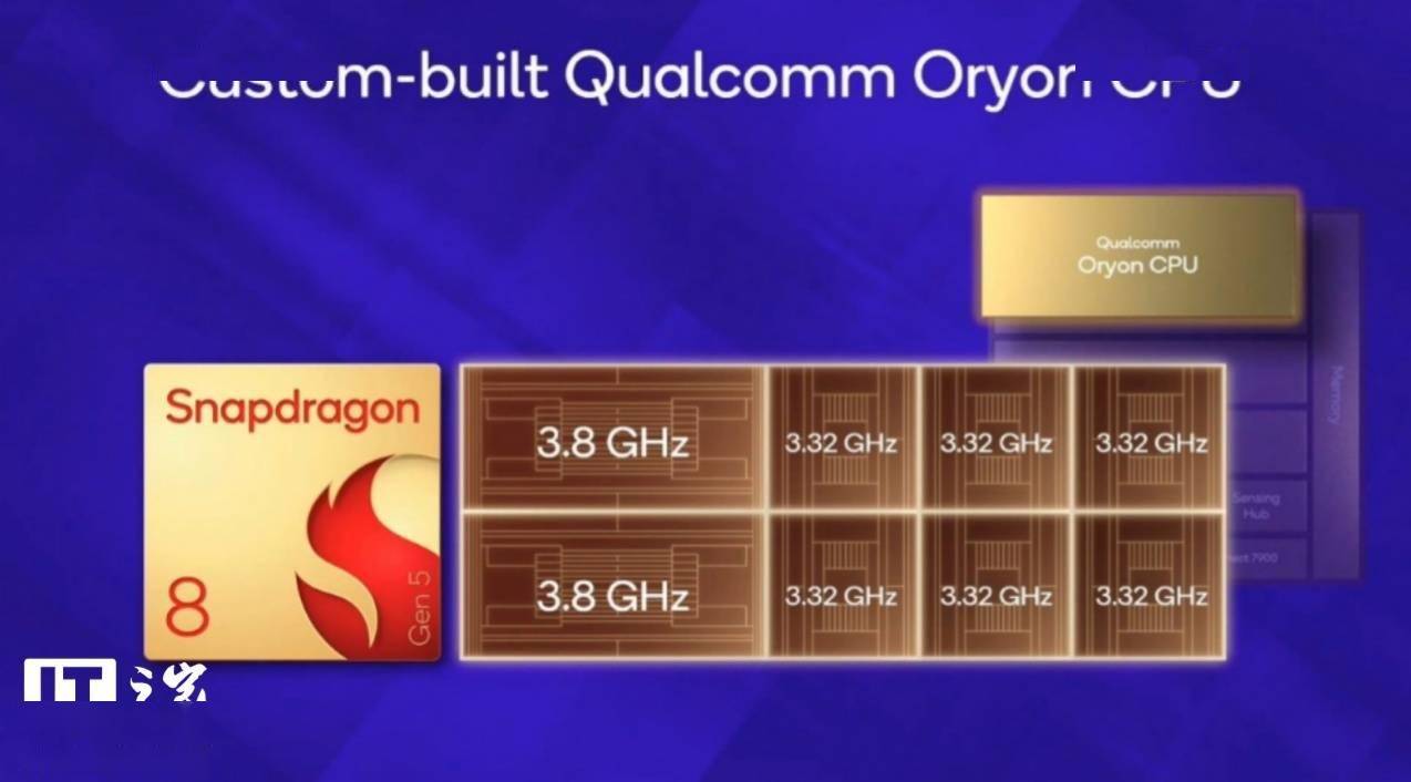 结合 今天报道,高通『骁龙』 8 Gen 5 处理器现已正式发布,配备第三代 Oryon CPU,包括 2 个主频为 3.8 GHz 的 prime 核心和 6 个 3.32GHz 的性能核心,相比两年前的『骁龙』 8 Gen 3 在 CPU 任务上有 36% 提升,GPU 提升 11%,AI 任务提升 46%。