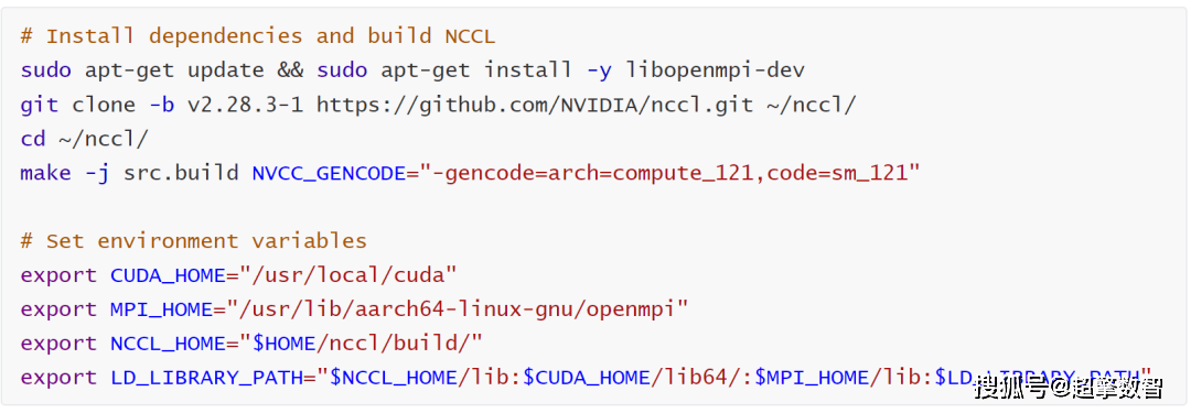 为此,我们搭建了一个精密的测试环境。首先,使用适配Blackwell架构NCCL源码进行编译安装,并配置合适的网络接口。我们特别选择了连接到两个不同CPU的网卡接口(例如enp1s0f0np0和enP2p1s0f1np1),并确保它们位于不同网段,以最大化测试结果的可靠性。