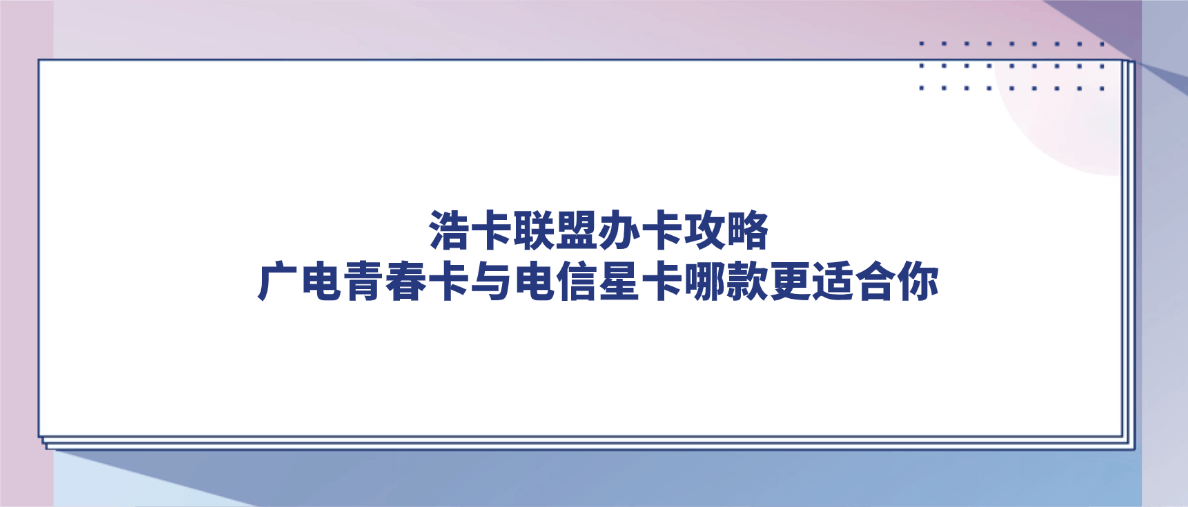 在生活越来越离不开流量的今天,选择一张适合自己的流量卡变得尤为重要。无论是学生党、上班族,还是自媒体内容创作者,高性价比的流量卡不仅能解决日常通信问题,还能在浩卡联盟的助力下实现推广收益。今天,我们重点对比两款热门卡品——广电青春卡和电信星卡,帮你挑选最适合自己的流量卡。