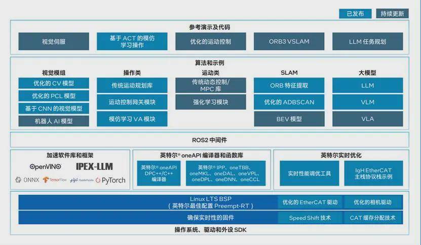 从「『机器人』️看什么、怎么学、怎么动」,一直到系统层面的调度、驱动、实时控制,英特尔提供了全栈套件,开发者不用「零帧」起步。