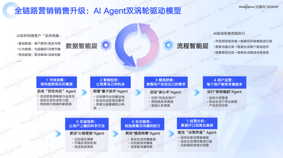 数据猿与上海大数据联盟联合发布《2025中国数据智能产业图谱2.0版》,Marketingforce迈富时入选该图谱「企业应用」和「数据&智能技术服务」核心板块。在营销、销售、数据分析等领域,以AI-Agentforce企业级智能体中台驱动下一代AI Agent应用生态。