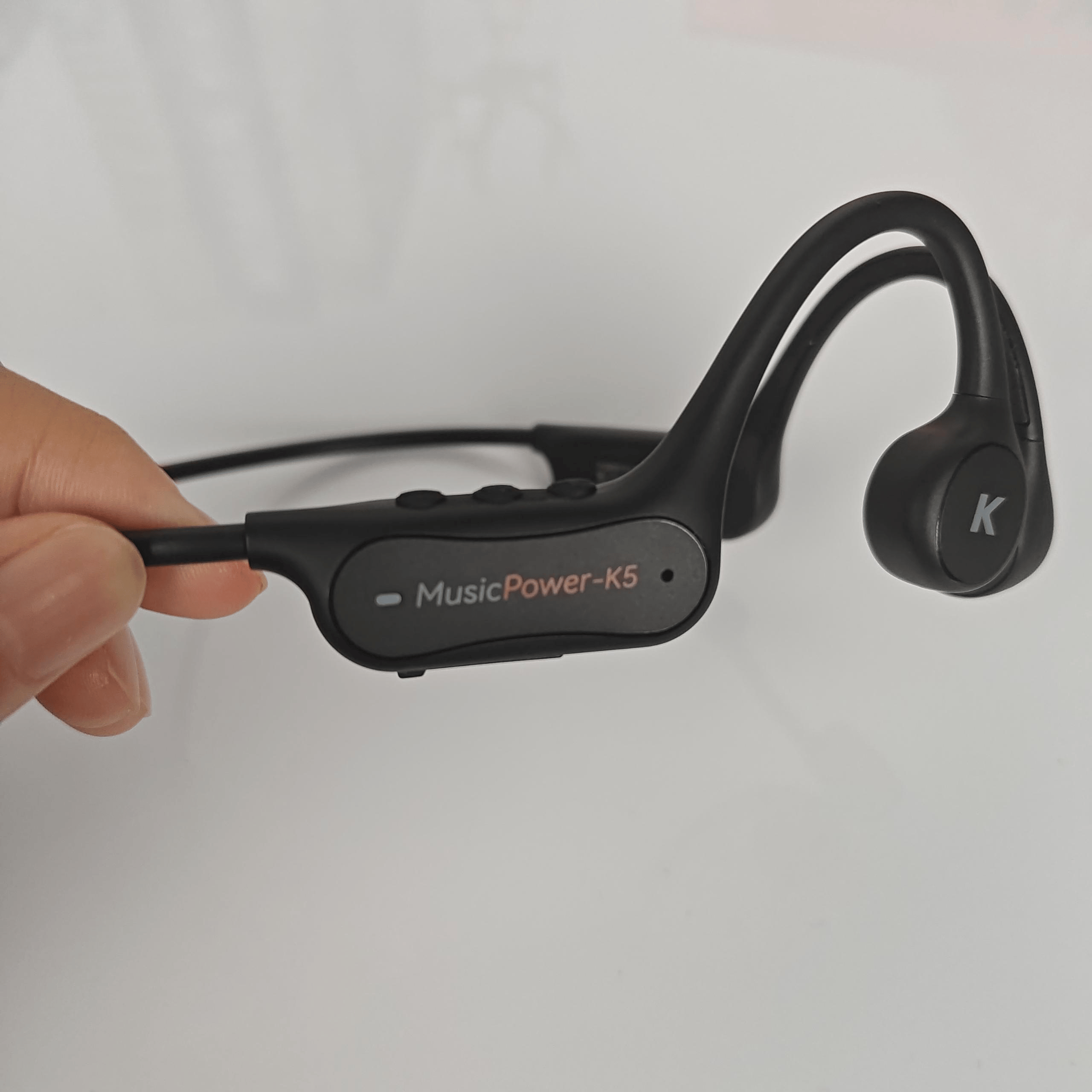 骨传导耳机的佩戴感太重要了,K5刚戴上时,耳挂弧度刚好卡在耳廓上方,机身轻轻贴在耳后,没觉得压着骨头。我特意捏了捏耳挂部分,是有弹性的软胶材质,不是硬邦邦的塑料,往耳朵上戴的时候能稍微弯折,戴稳后又能回弹贴紧。