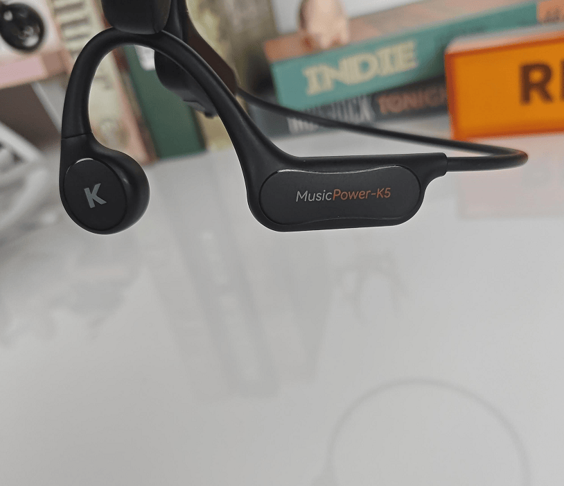 初见酷狗K5,第一感觉是“够利落”——没有花里胡哨的装饰,机身线条是流畅的弧线,它比我之前用的骨传导耳机窄了一小圈,按键设计,音量键和功能键做得扁平,凸起来的高度刚好能摸到,又不会像凸起按键那样硌耳朵。充电口在机身底部,盖着个软胶塞,塞子边缘有个小凸起,抠开的时候不用费劲,平时扣紧了也不用担心进水。整体看下来,没什么多余的设计,却处处透着为运动考虑的细节,往运动包里一放,不占地方也不怕磨。