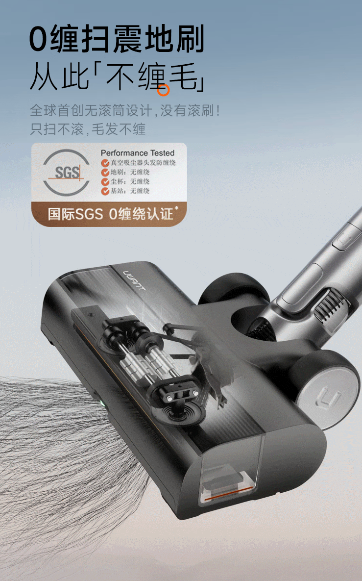 1. 绝对 0 缠毛:全球首创 0 缠扫震地刷,颠覆 120 年滚筒困局