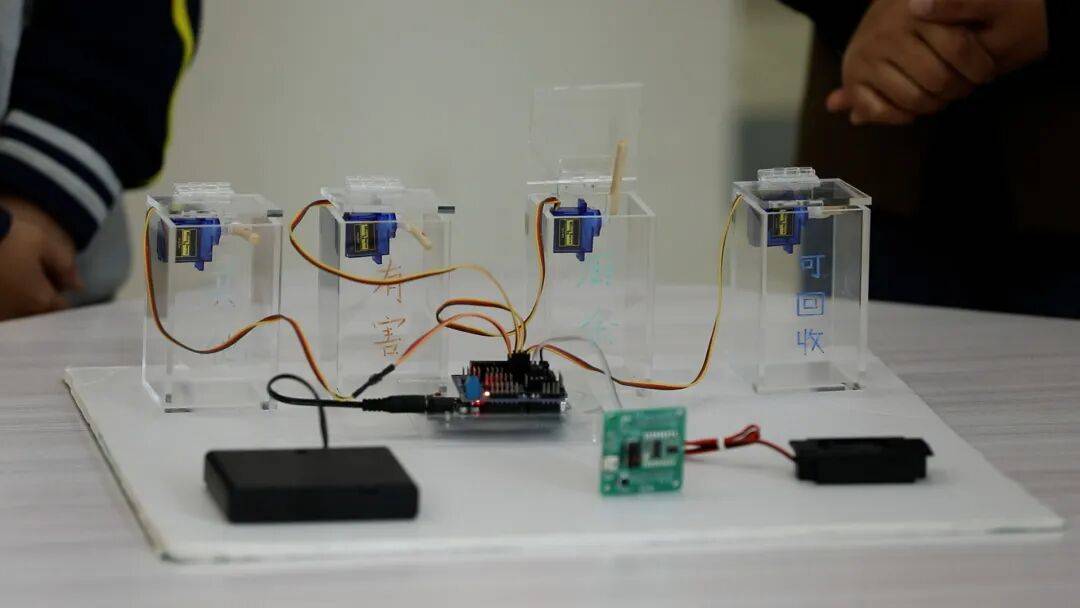 阳信县第一实验学校八年级张润东同学的路面结冰预警系统,李梓章张续仟两位同学合作的鱼菜共生系统,丁乐群同学的智能翻盖垃圾桶🗑️,着眼公共安全与生态环境治理,无不体现了他们未来主人翁的责任和担当。