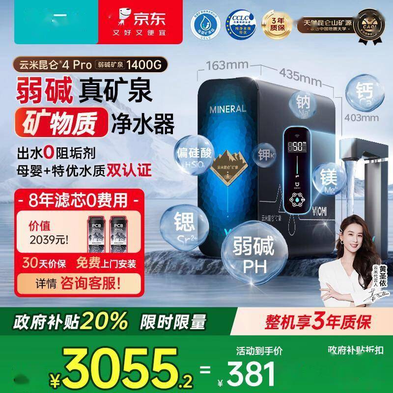 云米昆仑4Pro弱碱矿泉净水器带来的不是简单的过滤升级,而是一场饮水方式的基因改造。它用航天级RO反渗透膜搭配天然矿化技术,让普通自来水经历"去芜存菁-矿化重生"的奇妙旅程。1400G超大通量意味着接满一杯300ml的饮用水仅需6秒,比传统400G机型快3倍不止,早餐时段全家接水再也不会出现排队等待的尴尬场景。