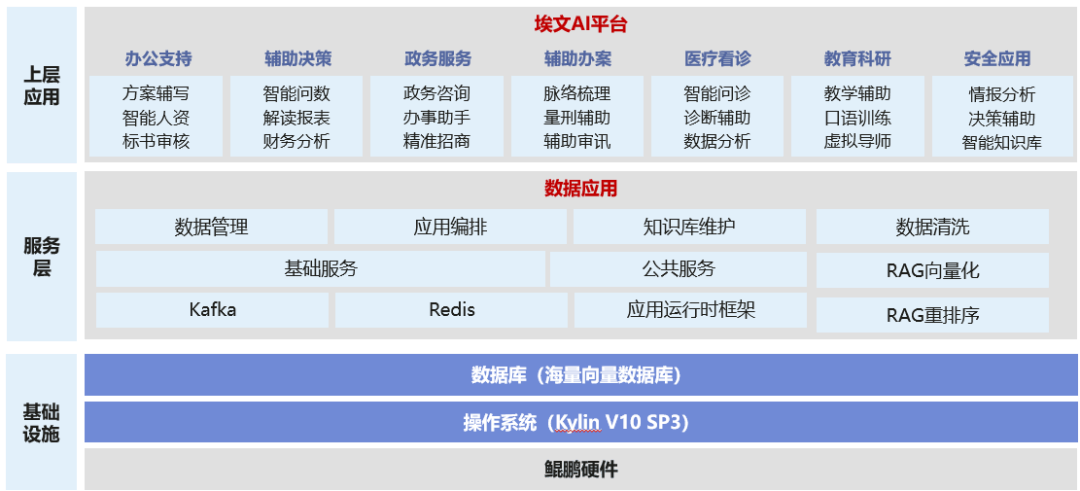 为了支撑多模型协同推理,埃文研发团队开展深度应用优化。基于鲲鹏软硬协同优化能力,向量数据库并发、单用户输出tokens性能提升显著,在数据检索和响应速度上平均提升40%以上。经过鲲鹏同辕开发优化,埃文科技AI使能平台解决方案在模型兼容性、平台敏捷性、算力利用率等方面均有了显著提升。此外,独特的软硬一体机交付模式为企业提供高性能与高性价比的平衡,全面支持AI方案智能生成、低代码智能体配置及企业级AI应用中心建设,满足不同行业客户的多样化需求。