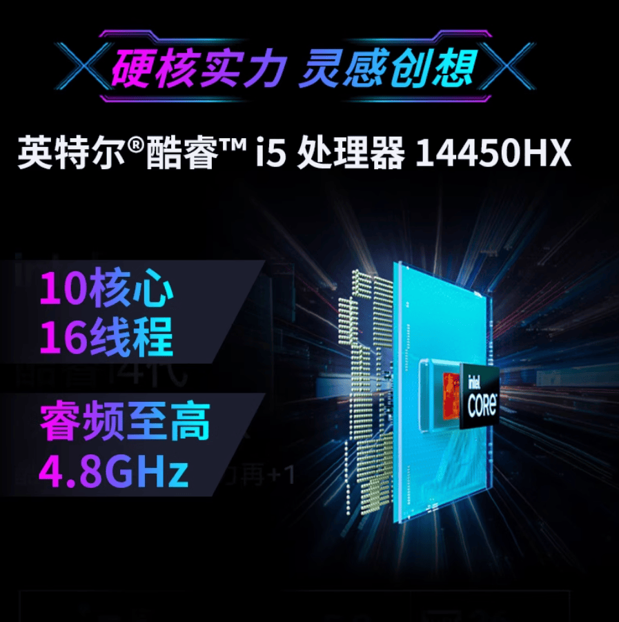 旷世X搭载的英特尔酷睿i5-14450HX处理器,拥有10核16线程的硬核规格,性能释放堪比主流台式机。无论是多任务处理还是视频剪辑,它都能做到心应手,游刃有余。
