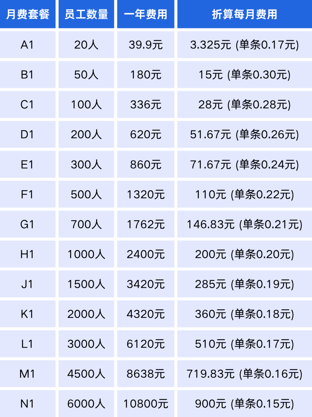 3000人企业,每月仅需510元平均单条工资条低至0.17元,远低于市场价!