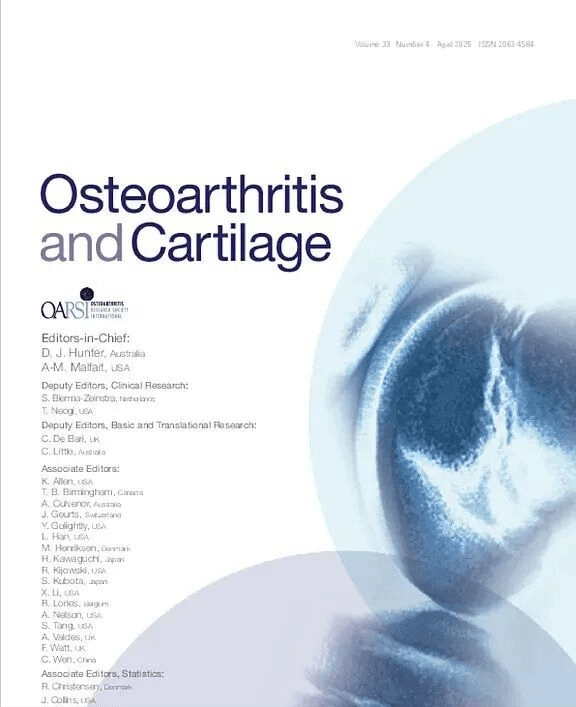 Osteoarthritis and Cartilage创刊于1993年,是国际骨关节炎研究学会的官方期刊,长期以来享有较高的学术声誉,令人惊喜的是,2025年期刊影响因子从7.2涨至9,在骨关节炎研究领域位列第二,成功晋升为中科院1区Top,已成为各类专家和从业者提供重要参考信息!