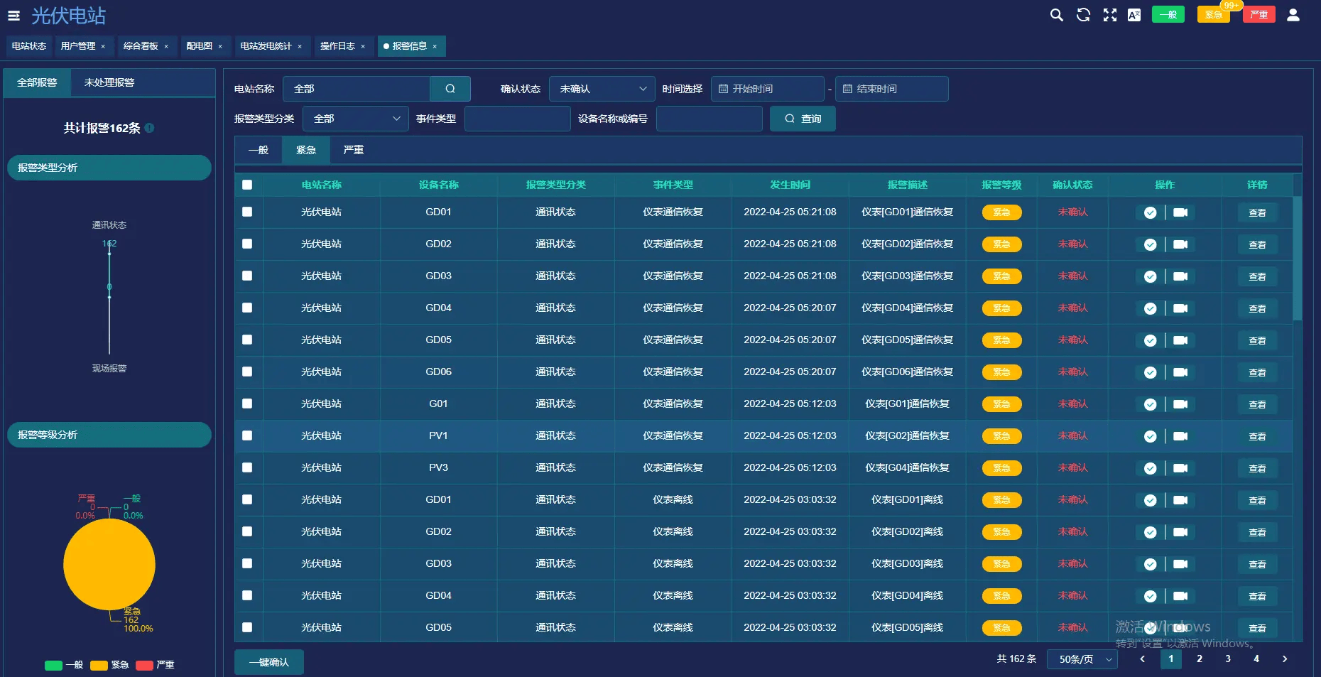 提供报警信息记录和报警分类分级功能。支持自定义分级,可根据故障的严重程度设置不同的报警级别,确保企业能够及时处理重要报警信息。当电站设备出现故障时,平台会及时发出报警通知,运维人员可根据报警级别迅速响应,采取相应的处理措施。
